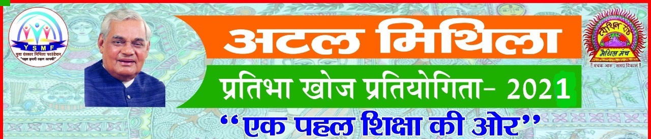 “मैथिल मंच” आ “युवा संस्कार मिथिला फ़ाउन्डेशन” के संयुक्त तत्वावधान में आयोजित होबयवला मिथिला स्तरीय “अटल मिथिला-प्रतिभा खोज प्रतियोगिता 2021” सम्पूर्ण मिथिला क्षेत्र में आयोजित कयल जायत। एहि प्रतियोगिताक मुख्य उद्देश्य मिथिला क्षेत्र के होनहार छात्र के चयनित कय सम्मानक संग हुनक सहयोग कयनाई अछि।