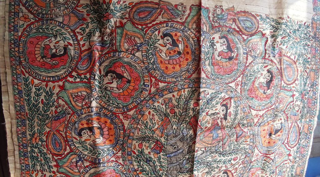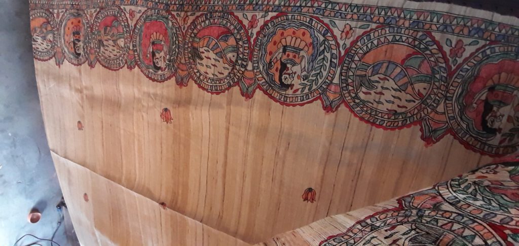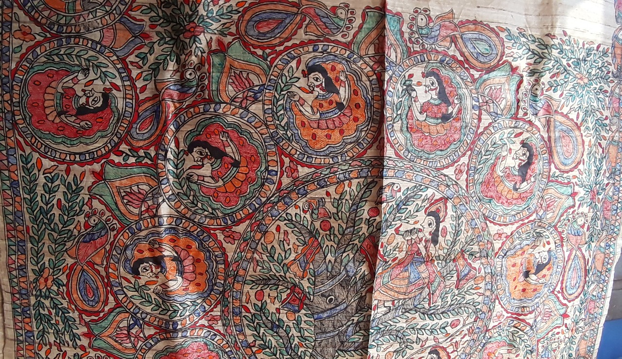 Material Used :: Bhagalpur Silk Sari and Acrylic and Febric Colour