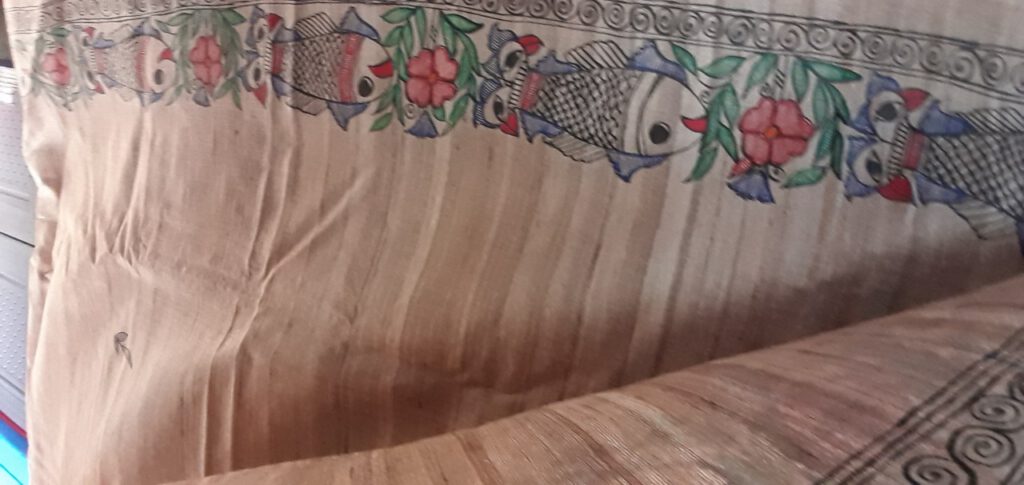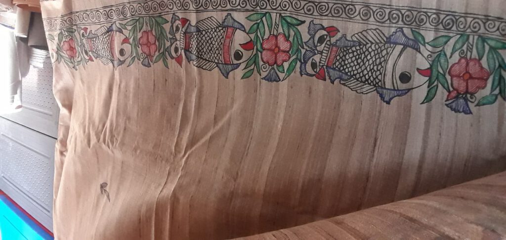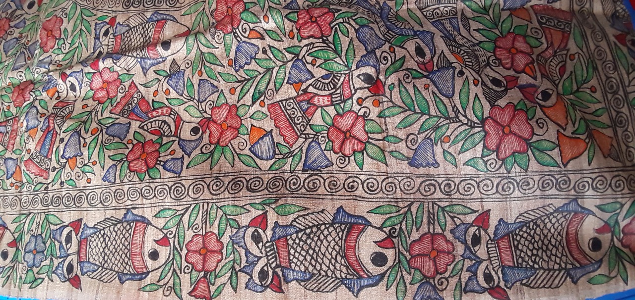 Material Used :: BHagalpuri Tasar Silk Sari and Acrylic and Febric Colour
