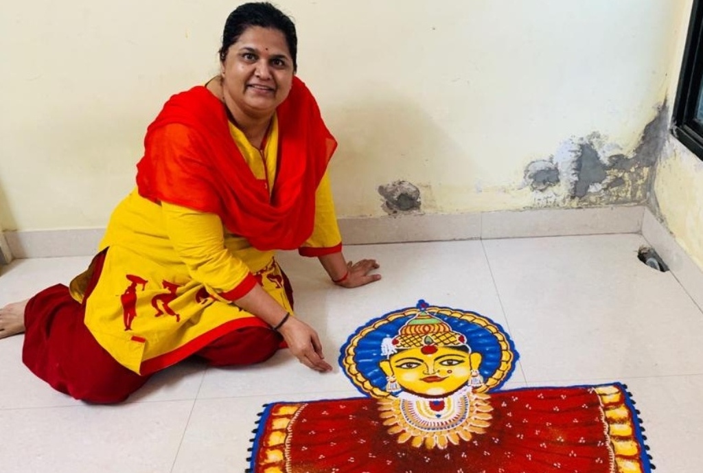 Smt Kavita Sapre, Aurangabad, Maharashtra, is the 1st participant of Mithila Folk Painting Competition 2020. Mrs. Sapre is attached with the depth of her soul with his own support for the purpose of the competition.
