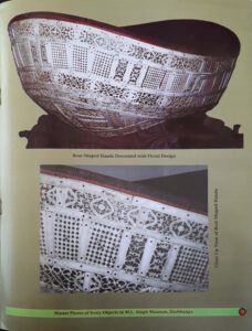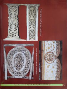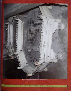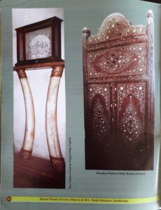 Statue made of marble and other stone made artifacts have been shown in his hall. A circular table made of a single piece of marble is treat to watch. A number of women have been inscribed one it in Greek – style. The clothes hair and physique of there women reflects the clear impact of greekan style. Just like greekan style the clothes are transparent and its fold are such that it seems it has been blown up by air. The curly hair looks very natural. - Hall Number 4 & 5: Ivory Hall. There is a unique collection of the artifacts made of ivory. Mat, Net, flowers, leaves and a lot of other things, made of ivory, are just superb in its presentation. A spulse made of ivory is so lively that visitors get mazes after seeing it. Beside this Ivory mad lions and sofa-set also attract the visitors very much.