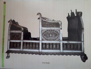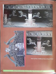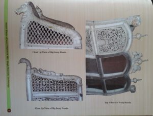 • Just above silver plate there are elephants an each corner of the throne at the distance of two feets. There are hole in the back of these elephants. Most probably silver rod would have been used to decorate the throne as per desire.