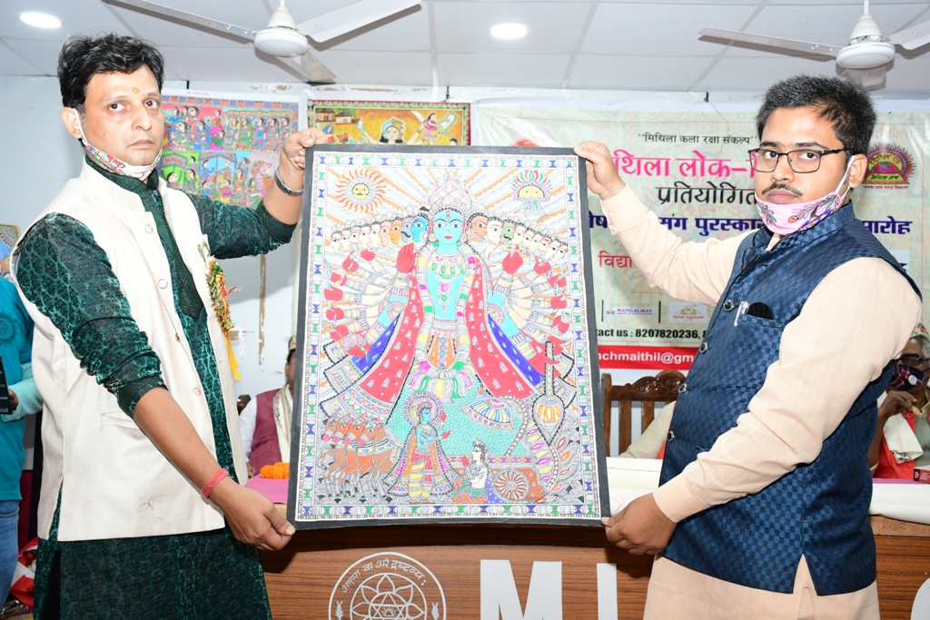 “मिथिला लोक-चित्रकला प्रतियोगिता 2020” में प्रथम पुरस्कार “मैथिल मंच” के प्रेरणास्रोत बिहार विधान परिषद के पूर्व सभापति, मिथिला राज्य आँदोलन के प्रणेता स्व. पं. ताराकांत झा जी के स्मृति में चैनपुर, सहरसा के सुश्री अर्चना मिश्रा जी के प्रदान कयल गेल