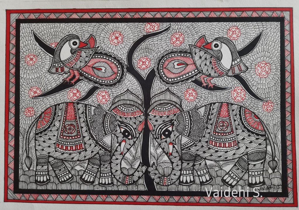 Mithila art is now my hobby turned into passion. From a humble ball pen to using brushes and now traditional nib pen, from kids leftover sketch book pages to using canvas, from sketch pens to acrylic colours, i have come a long way.