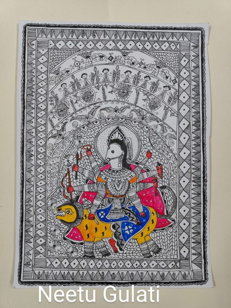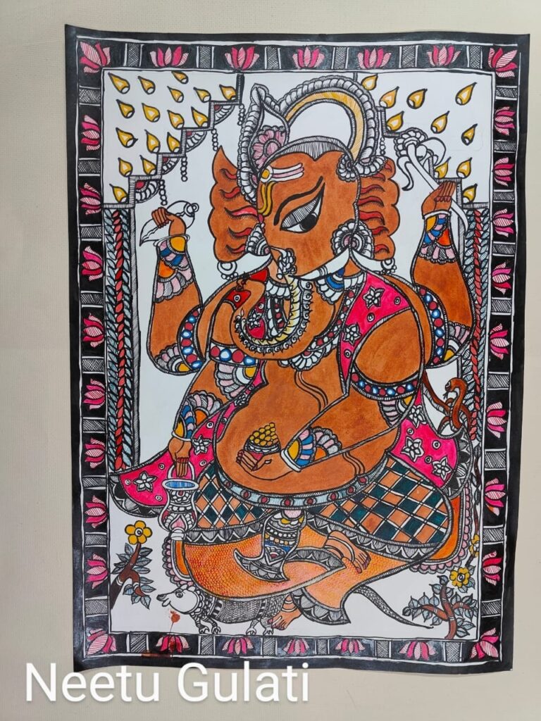 I am a budding artist, who started my journey of mithila painting during covid to overcome the depressing phase . However my passion for art, and determination, along with all my mentors, teachers and gurus, helped unearth the artist that was hidden deep down in me. Thank you all from the bottom of my heart, for nurturing the artist within me specially as I restarted after a gap with my earlier career spanning across public relations and teaching.