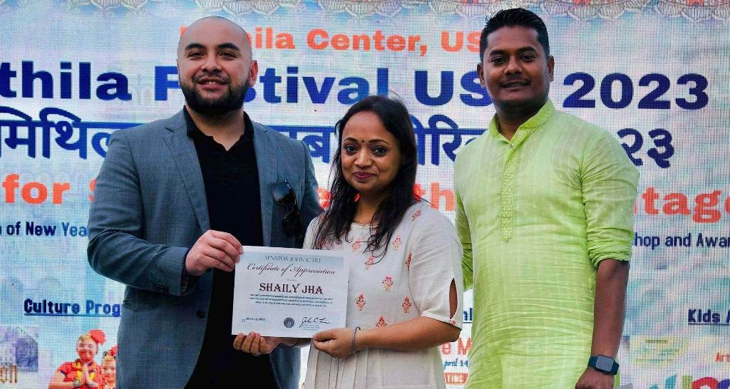 For Mithila art, it was a great honor to receive recognition from the New York State Senator, John C. Liu and New York State Assembly Member, Hon. Steven B. Raga.