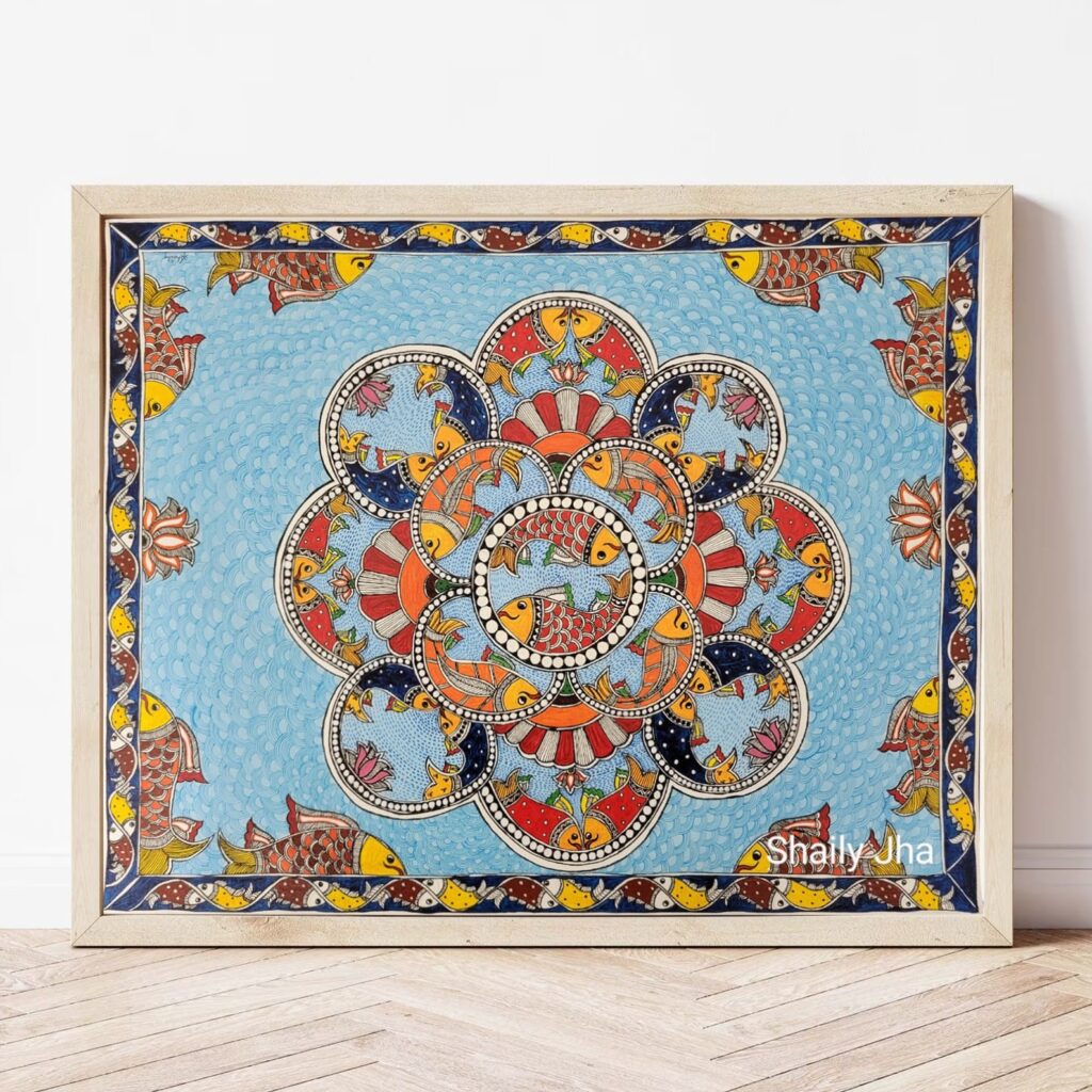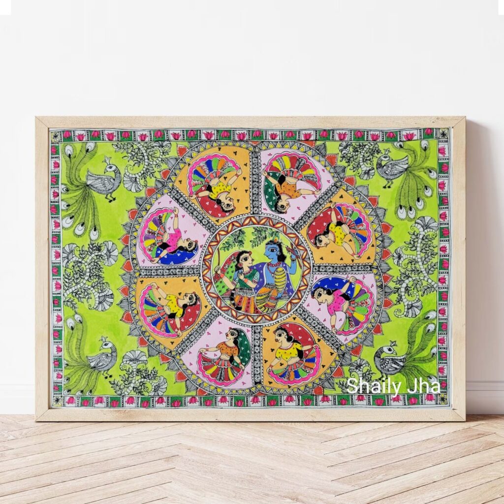 Shaily is a New Jersey based artist, an IT professional on a break and a full-time mom. Hailing from Darbhanga, Bihar, she has grown up watching the women in her family practice Mithila art since her childhood and that has been a big influence on her affinity towards the art.