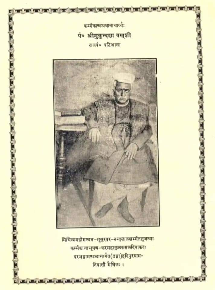 मुकुंद झा बक्शी संस्कृत क ख्यातिप्राप्त नामवर खासके कर्मकांड क विद्वान छलाह . वो काशी मे अध्यापन केलाक उपरांत किछु दिन पटिआला महाराज क दरवार मे राज पंडित रहलाक बाद मुजफ्फरपुर क धर्मसमाज कॉलेज मे १९१९ से १९३८ तक अध्यापन क कार्य केलैथ . जीवन क अंतिम समय काशी मे व्यतीत केलैथ .