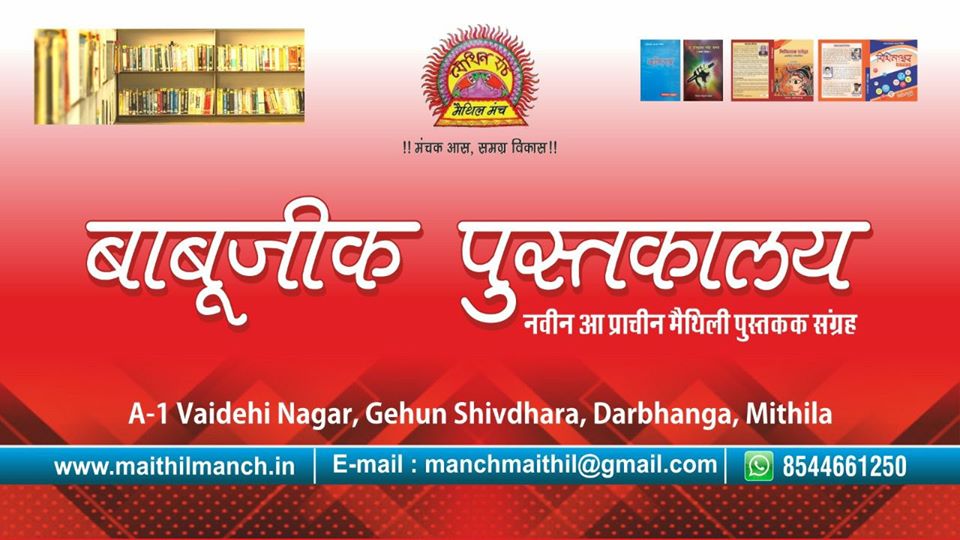 आई #विवाह_पंचमी के शुभ उपलक्ष्य में माँ मैथिली के समर्पित #बाबूजीक_पुस्तकालय के तरफ सँ ई निश्चय कयल गेल कि #आठवाँ सँ #स्नातक के विद्यार्थीगण लेल हर सप्ताह #मैथिली_लेखन (#कविता वा #कथा) एक विद्यार्थी के 101/- टकाक प्रोत्साहन राशि देल जायत।