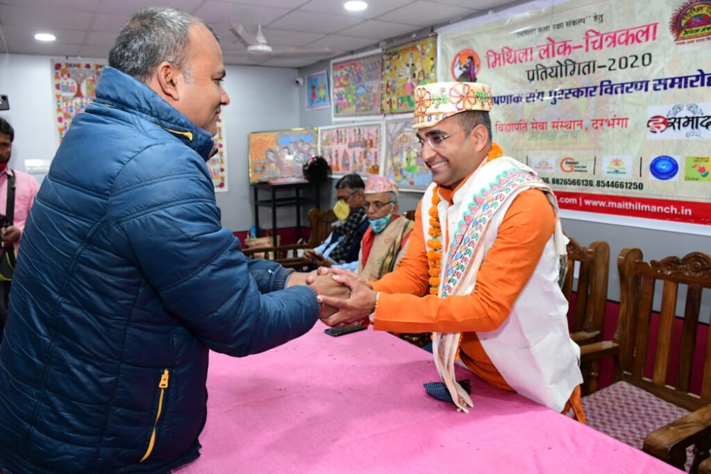 विदित होई कि गजेन्द्र जी मैथिल मंच द्वारा आयोजित “मिथिला लोक-चित्रकला प्रतियोगिता 2020” के परिणाम संग पुरस्कार वितरण समारोह में विशिष्ट अतिथि रूप में आयल छलथि आ हुनक विचार आ मिथिला पेंटिंग के क्षेत्र में कयल काज आ भविष्य के लेल कार्ययोजना पर चर्चा के क्रम में सैकड़ो कलाकारगण के मनोबल बढ़लनि आ एकटा विश्वास बनलन्हि कि आगा चलबाक नहि अछि अपितु आब आगा दौड़बाक अछि आ दुनिया में मिथिला के एहि कला के वृहत औद्योगिक रूप में प्रस्तुत करबाक अछि।