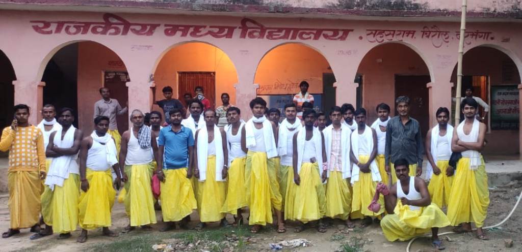विद्यालय के प्रधानाध्यापक के अनूठा प्रयास रहल जे मिथिला के परंपरानुसार ओहि धोती के रंग कय आ विधिवत विदाई कयल गेल लोक सबके।