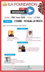 आई ILA Foundation, Noida द्वारा COVID-19 Roles Of NGO’s पर वेविनार राखल गेल छल जहिमें कोरोना महामारी के एहि विकराल समय में कोनो सामाजिक संस्था अर्थात NGO सबके की जिम्मेदारी होबाक चाही एहि समय में, एहिपर विस्तृत चर्चा कयल गेल।