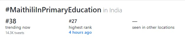 18000 ट्वीट संगहि देशभरि में 38सम सँ 27 स्थान धरि ट्रेंड करैत रहल ई माँग।