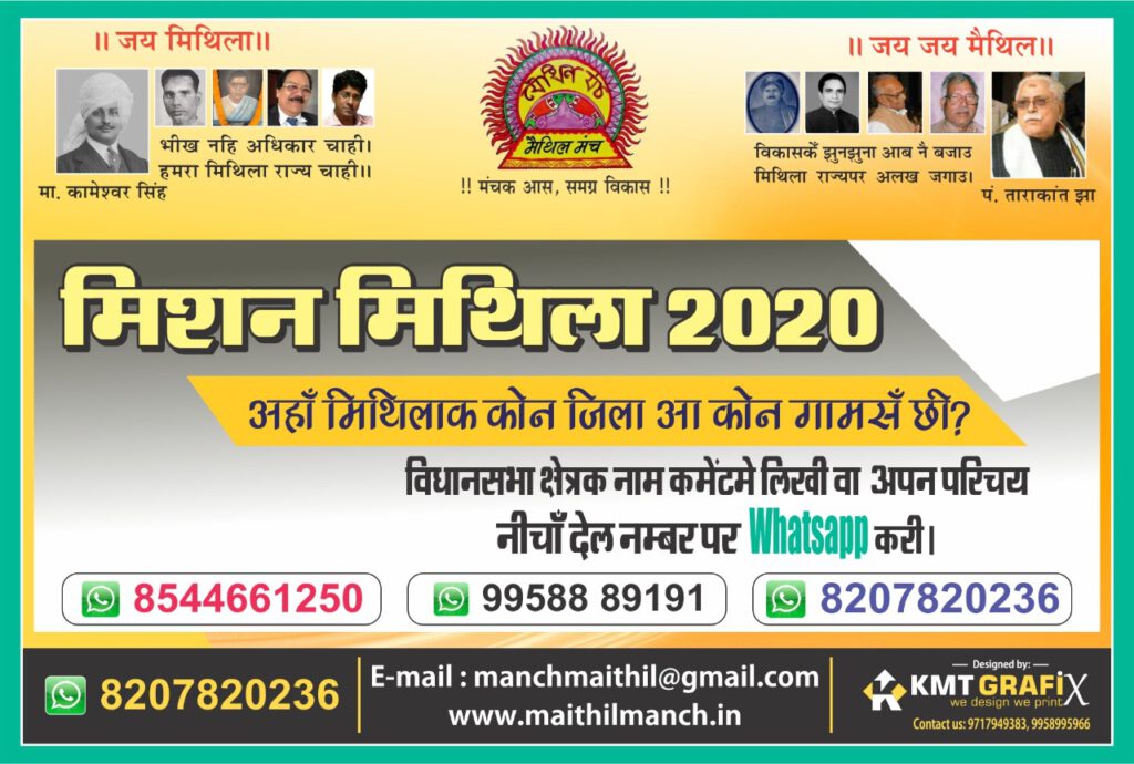 अहाँ सबके त ई बुझले अछि कि पछिला किछु महीना सँ सोशल मीडिया आ यथार्थ राजनीतिक पटल पर पूरा भारत में मिथिला राज्य के औचित्य आ माँग पर सबगोटे सोचबाक लेल मजबूर भय रहल छथि। पैघ राजनीतिक दल होथि वा फेर छोट-छोट कार्यसमूह सबमे विभक्त सामाजिक-सांस्कृतिक-राजनीतिक कार्यकर्ता लोकनि रहथि, सबगोटे 2014-15 के बाद फेर सँ मिथिला राज्यक आवश्यकता के स्वीकार करबा मे लागल छथि। एना त बिहार साझा संस्कृति, भाषा आ धर्म के एकटा बेहतर कल्पना सँ राज्य बनल छल, मुदा एहिठामक बेईमान नेता आ सत्ता-संचालक लोकनि आखिरकार साझा सम्पत्ति व प्रतिष्ठा के सरकारी माल समझिकय लूटय के सिवा दोसर कोनो काज नै कयलन्हि, आ परिणाम सबहक सामने अछि। बिहार आ बिहारी पूरा संसार में एकटा गाईर बनिकय रहि गेल अछि। एतय के गरीब मजदूर सँ देशक निर्माण होईत अछि, परन्तु हिनका सबके बिहारी कहिकय बेसहारा आ अनाथ के तरह रोटी पर पलैत देखि, झूग्गी-झोपड़ी में रहबा लेल मजबूर होईत देखि, बाकी राज्य के लोक सबके नजर में अपमानजनक पहचान बननाई स्वाभाविक अछि। थोड़-बेसी लोक जे अपना संग ‘बिहारी स्वाभिमान’ के बिल्ला लगाकय एम्हर-ओम्हर भटकैत नजर सेहो आबि जाईत छथि त हुनका गृहराज्य कज चौपट आ भ्रष्ट जातिवादी राजनीति में कोनो दिलचस्पी नहि रहि जाईत अछि, ओ त बस अपन ओहदा आ भौतिक सुखक लालसा में खुद के स्वर्ण-लंका निर्माणे टा धर्म मानैत छथि, जीबै-जीबैत मरि जाईत छथि आ कहानी खत्म भय जाईत छन्हि।