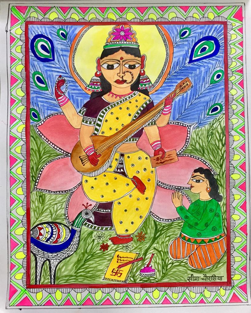 और अपने देश की कला को जानने की इच्छा से मुक्ति झा जी 🙏🏻से मैंने मिथिला कला सीखी